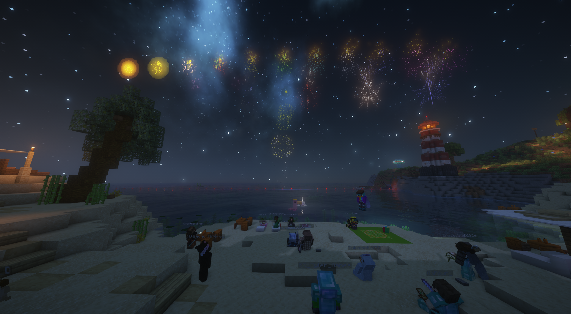 Autcraft will be setting off fireworks on the server every hour all day so that you can watch fireworks at midnight from the comfort of your own home when your clock strikes midnight!